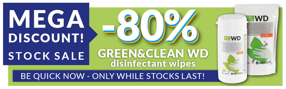 We are clearing our stock and offering you the opportunity to secure our GREEN&CLEAN WD pouches (order no. 122000055, 6x WD bags) and dispensers (order no. 122000054, 12x dispensers) with an 80% discount!